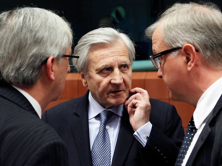 Eurogruppen-Chef Jean-Claude Juncker, EZB-Chef Jean Claude Trichet und EU-Währungskommissar Olli Rehn (von lks.) haben Post bekommen.
