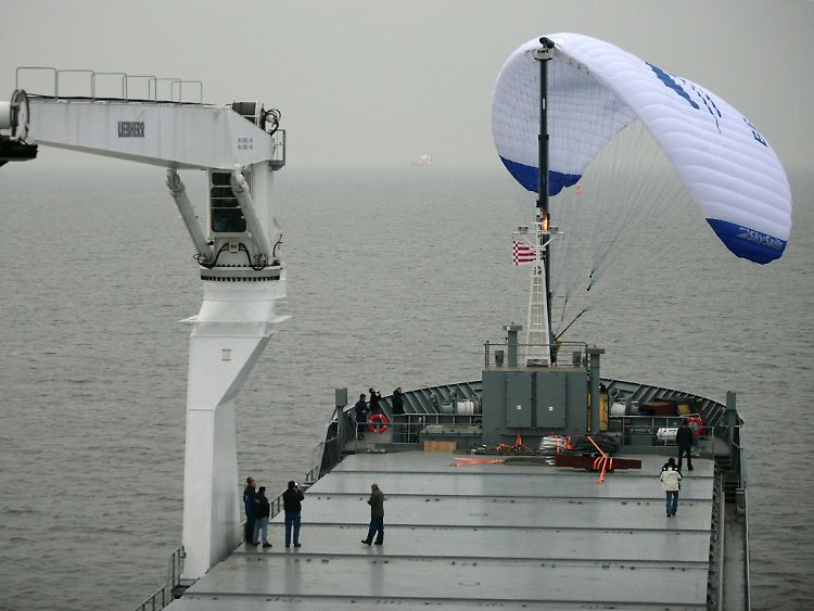 Frachter mit Lenkdrachen: Niels Stolberg zählt zu den Förderern des Projekt "Skysails".