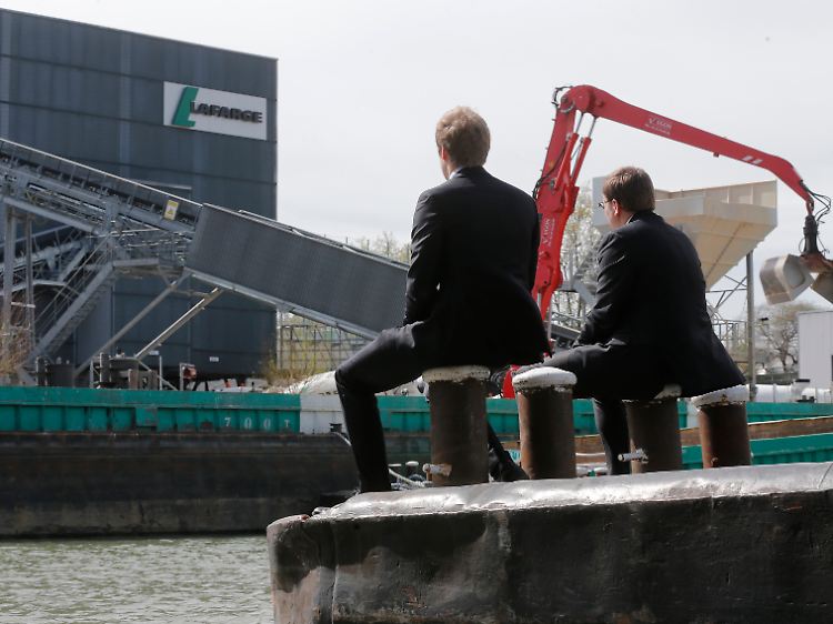 Fusionen und Übernahmen verändern Vieles: In einem Binnenhafen bei Paris beobachten Geschäftsleute das Treiben bei Lafarge.