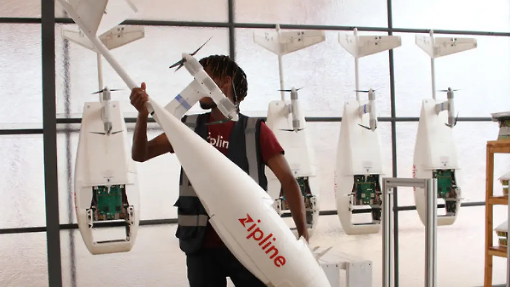 Innerhalb von Sekunden bauen Mitarbeiter des US-Unternehmens Zipline das unbemannte Flugobjekt auf einem kleinen, eingezäunten Gelände in der Stadt Muhanga im Zentrum des Landes ab. Kurz darauf surrt eine weitere Drohne mit einer Geschwindigkeit von bis zu 100 km/h zum nächsten Gesundheitszentrum.