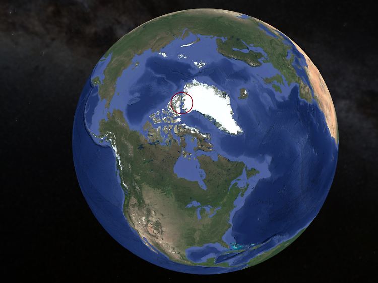 Hier in der Nares-Straße (mit Kreis markiert) liegt die winzige Hans-Insel.