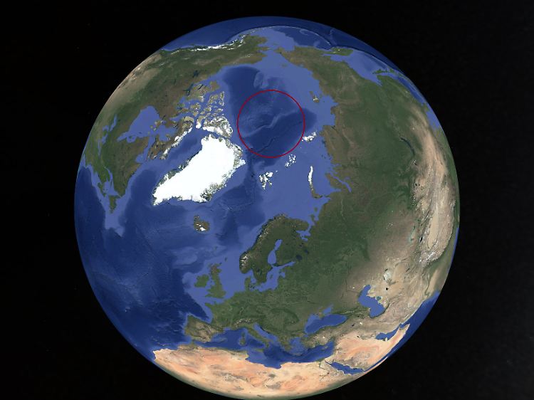 Die Lage des Lomonossow-Rückens (mit Kreis markiert).