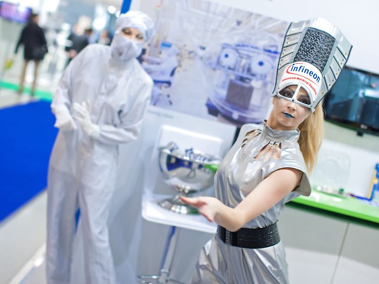 Am Stand des Chipherstellers auf der Messe Semicon Europa 2010 in Dresden muss eine junge Frau im Infineon-Kostüm tanzen: Kreativität ist im Halbleitergeschäft nicht gerade eine Schlüsselqualifikation.