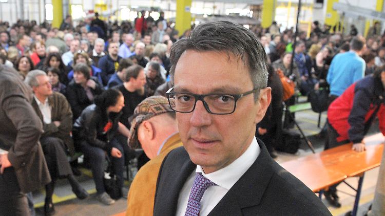 Lösung gefunden? Insolvenzverwalter Arndt Geiwitz (r.) bei einer Betriebsversammlung im März.