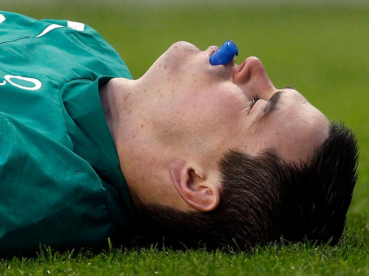 Irlands Rugby-Nationalspieler Jonathan Sexton verkörpert in dieser Szene die derzeitige Lage seines Landes.