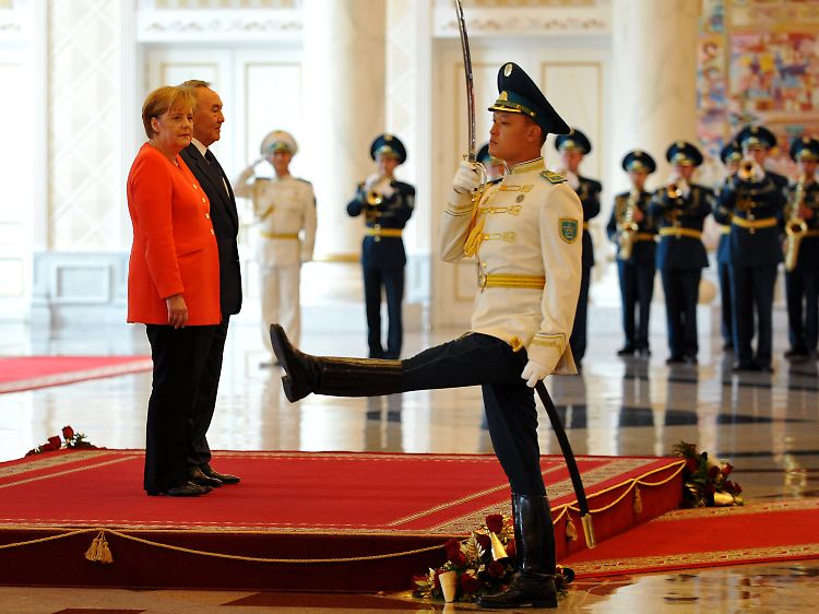 Merkel mahnte zudem in vorsichtigem Ton weitere rechtsstaatliche Reformen in dem Land an, dass derzeit den OSZE-Vorsitz hat. Dass Kasachstan den Vorsitz trotz erheblicher Defizite bei den Menschenrechten bekam, war in der EU durchaus umstritten. Deutschland habe die Kandidatur aber von Anfang an unterstützt, betonte Merkel. Der OSZE-Vorsitz gebe Kasachstan "eine hervorragende Gelegenheit, deutlich zu machen, dass es die Werte Freiheit, Sicherheit, Demokratie und Menschenrechte" für sinnvoll und notwendig erachte.