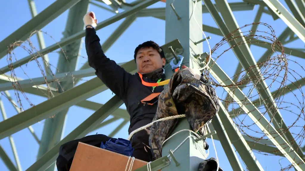 Protestaktion bei HyundaiKoreaner besetzen Strommast