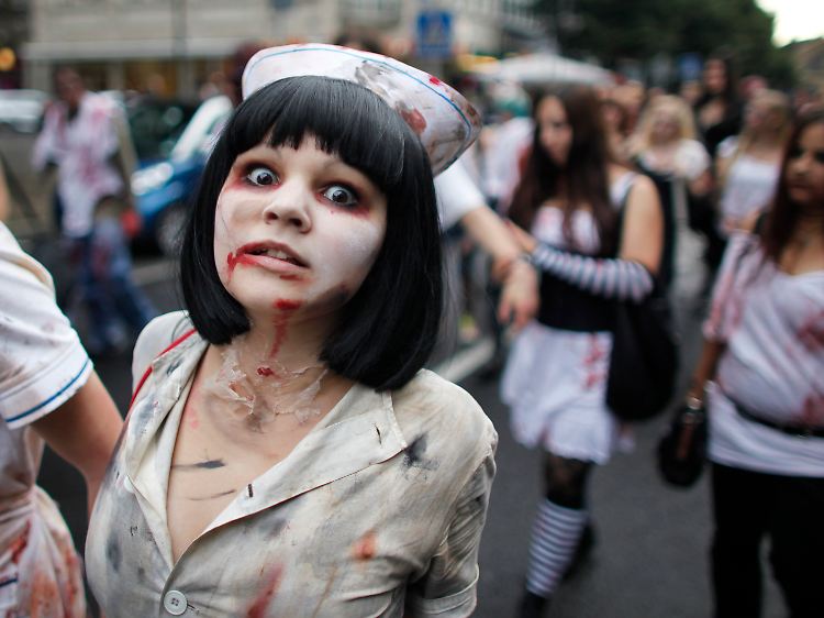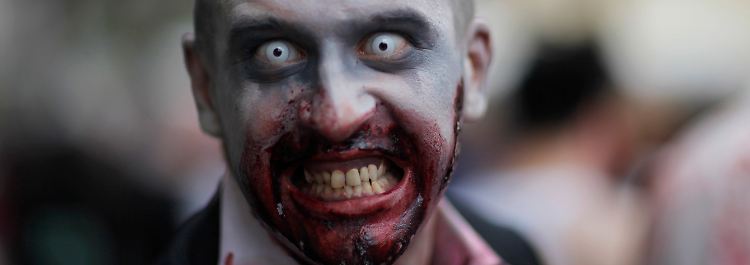 Der Fall Lehman gewährte allen Beteiligten einen Blick in den Abgrund: Einen Eindruck vom Ausmaß des kalten Grausens liefert dieser Zombie-Darsteller in Frankfurt.