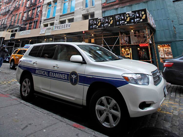 Manhattan, südlich der Houston Street: Der Gerichtsmediziner auf dem Weg in das Appartment, in dem Mark Madoff starb.