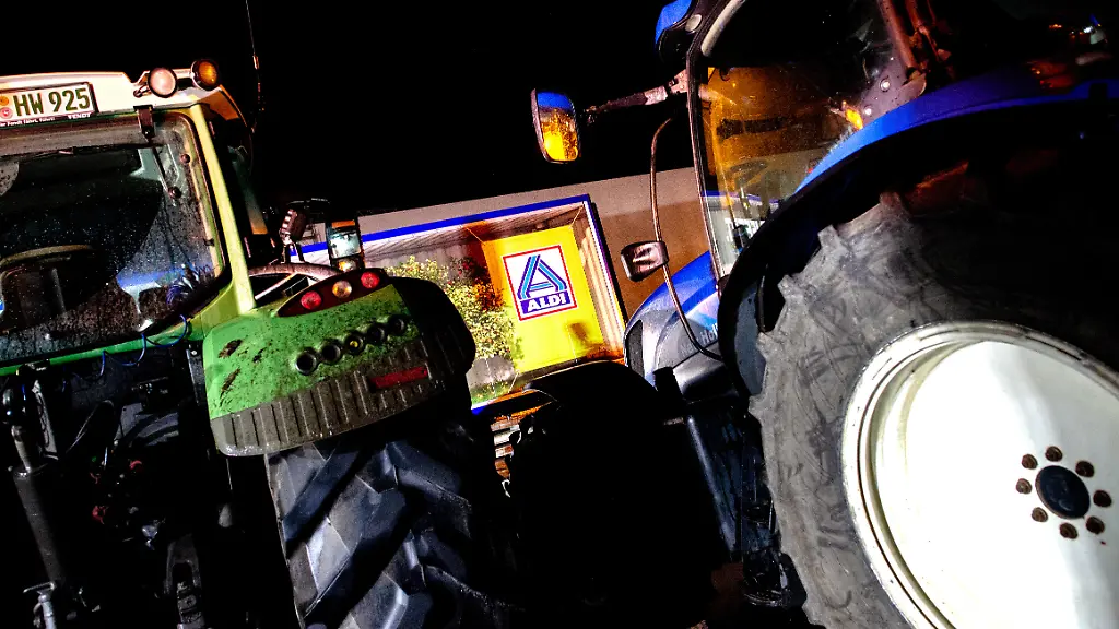 In Nortorf protestierten die Bauern am Sonntagabend bis zu 100 Fahrzeugen und lautstarkem Hupen vor dem Aldi-Zentrallager, wie die Polizei mitteilte. Wegen des geringen Verkehrs habe es trotz der Traktorkolonne keine Verkehrsbehinderungen gegeben. Anwohner hatten sich allerdings wegen des Lärms beschwert. Die Bauern hätten daraufhin auf das Hupen verzichtet. Auch vor dem Aldi-Zentrallager in Gleschendorf in der Gemeinde Scharbeutz hatten sich bis zu 100 Traktoren versammelt, sagte die Schleswig-Holstein-Vorsitzende der Bauernbewegung "Land schafft Verbindung" (LSV), Uta Schmidt-Kühl.