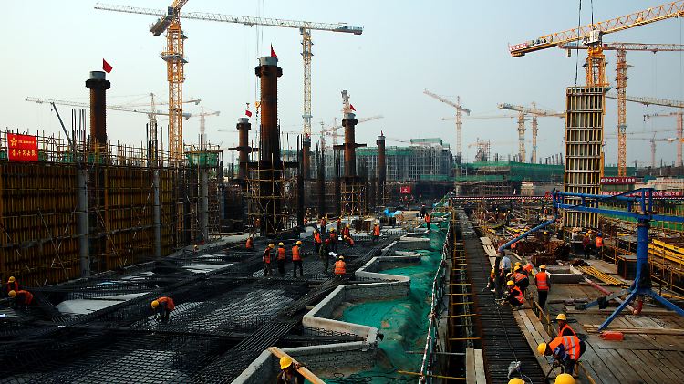 Im Minutentakt donnern Laster und Betonmischer auf der Landstraße vorbei, bis sie vor einer Straßensperre abrupt bremsen. Sicherheitsleute kontrollieren Papiere, eine Schranke hebt sich und die rasante Fahrt der Trucks geht weiter. Vorbei an Unterkünften für Tausende Arbeiter, dann in eine Baugrube, aus der unzählige Kräne ihre stählernen Hälse strecken. So sieht es also aus, wenn in China ein neuer Hauptstadtflughafen gebaut wird. Niemand will hier Zeit verlieren: Im September 2015 begannen die Arbeiten an dem Bauwerk, das nach Angaben der Flughafengesellschaft bald das nach Fläche größte Flughafen-Terminal der Welt sein wird.