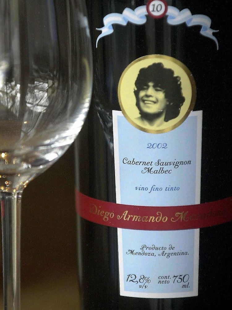 Tausche Wein gegen Porsche: Ein argentinischer Cabernet Sauvignon mit dem Konterfei des Fußballgottes Diego Maradona.