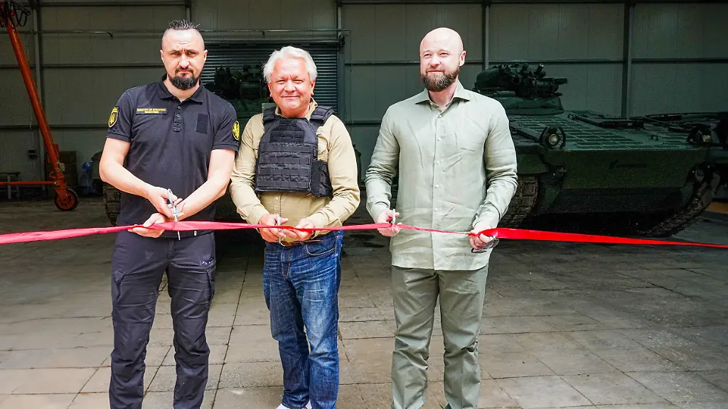 Der deutsche Rüstungskonzern Rheinmetall und die Ukraine haben nach Angaben aus Kiew einen ersten gemeinsamen Panzer-Reparaturbetrieb und eine Produktionsstätte eröffnet. Es seien die Schlüssel zur Werkstatt für die Reparatur und Wartung des Schützenpanzers Marder übergeben worden, teilte das ukrainische Ministerium für strategische Industriezweige in Kiew mit.