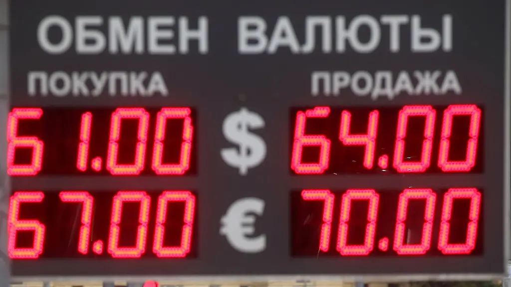 Der Rubel hat seine zwischenzeitliche Erholung wieder abgebrochen und verliert seit Wochen gegenüber dem Dollar und Euro zunehmend an Wert. Am Freitag müssen für einen Dollar 64,42 Rubel bezahlt werden - das ist der höchste Stand seit Februar dieses Jahres. Zum Euro lässt der Rubel ebenfalls weiter nach - ein Euro kostet gegen Mittag 70,20 Rubel. Das sind 0,3 Prozent mehr als am Vortag. Im Laufe eines Jahres hat der Rubel zum Euro damit mehr als 40 Prozent an Wert verloren.