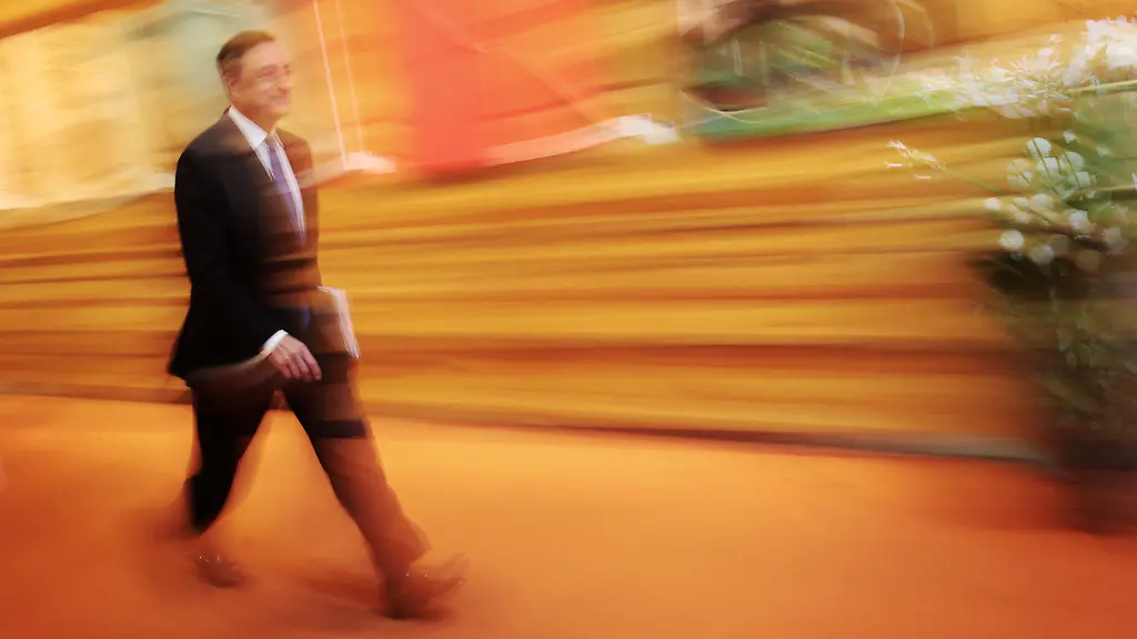 EZB-Chef Draghi kommt mit großen Schritten: Am 22. Januar könnte er mit Anleihekäufen loslegen. (Foto: picture alliance / dpa)