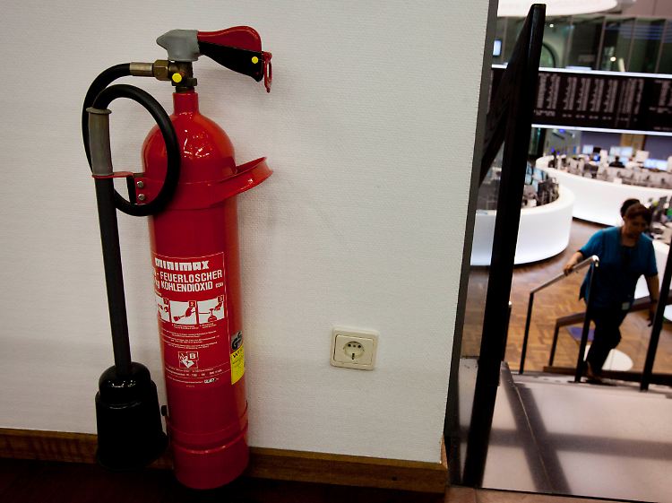 An der Deutschen Börse stets in Reichweite: Ein Kohlendioxid-Löscher für elektrische Anlagen.