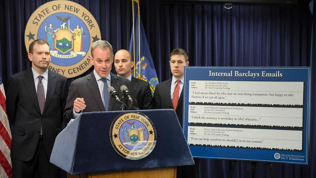 Barclays habe seinen Dark Pool ausgeweitet, in dem die Bank ihren Kunden versichert habe, sie seien in sicheren Gewässern, erklärte Schneiderman. Der Dark Poll sei aber voll von Raubfischen gewesen und diese seien dorthin auf Einladung von Barclays gekommen. Barclays erklärte, die Bank nehme die Vorwürfe sehr ernst und kooperiere in dem Fall mit den Behörden. Die Integrität von Märkten gehöre zu den obersten Prioritäten des Instituts. 2012 hatte die Bank eine Zahlung von 450 Millionen Dollar im branchenweiten Skandal um die Manipulation des Interbanken-Zinssatzes Libor aufgebrummt bekommen.