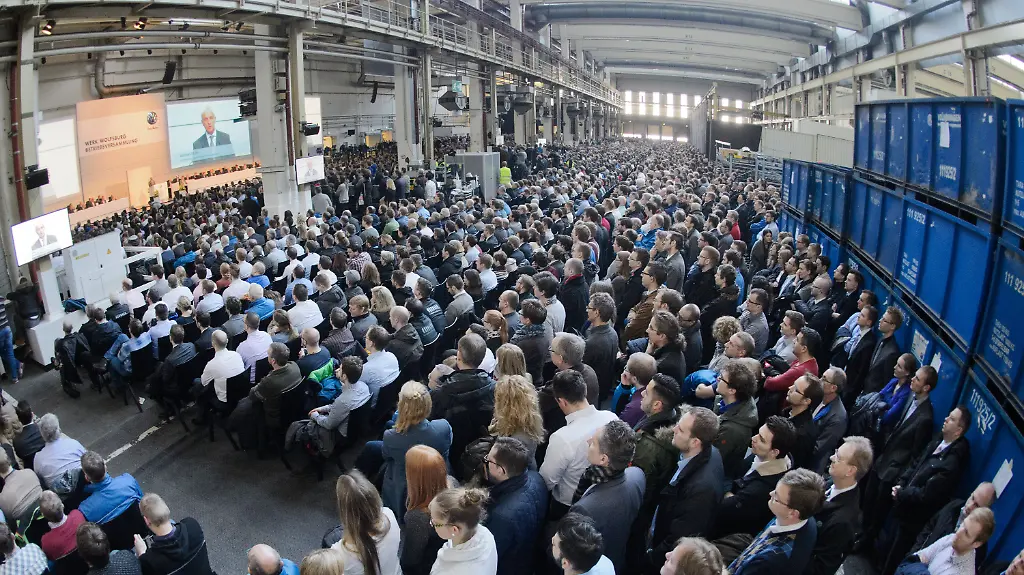 Krisenmanagement im eigenen Haus: Bei der Betriebsversammlung in Wolfsburg richtet VW-Chef Müller das Wort an die VW-Mitarbeiter. Vor Ort lauschen 20.000 Beschäftigte, was der Mann an der Spitze zum Abgas-Skandal zu sagen hat.