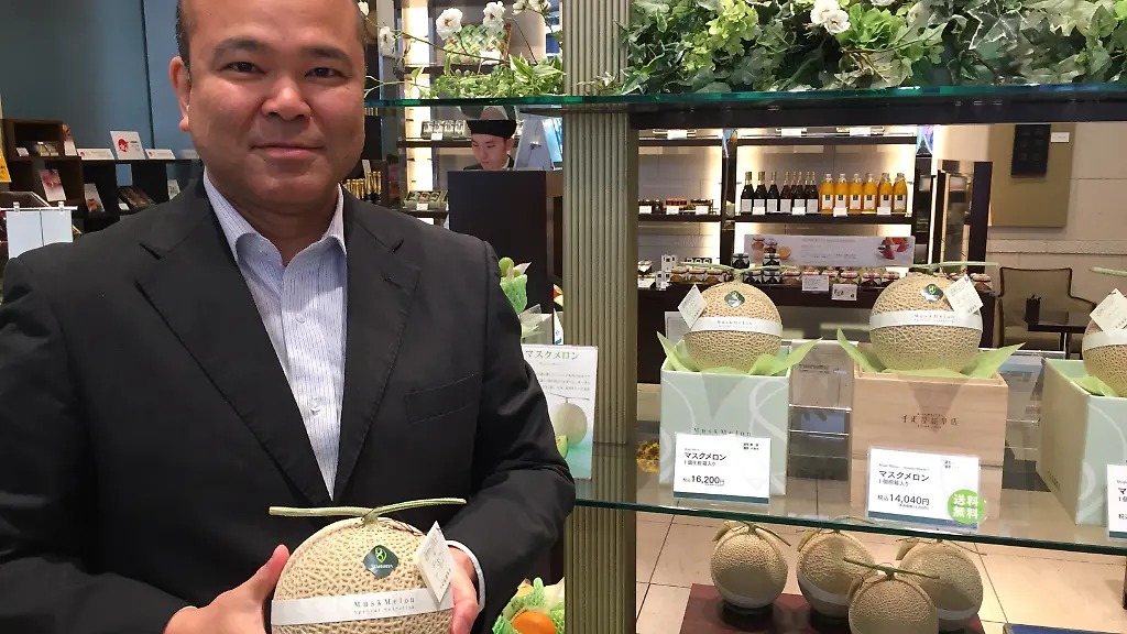 Mit ernster Miene beäugt Naoto Hiraishi seine Melone. Prüfend betrachtet der Manager des Obstwarengeschäfts Senbikiya die kugelrunde Frucht von allen Seiten. "Schauen Sie, das Netz auf der Oberfläche, es ist vollkommen gleichmäßig", erzählt der Japaner strahlend und dreht das Stück Obst vorsichtig in seinen Händen, als halte er einen funkelnden Diamanten vor sich.