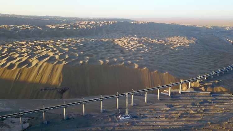 Die Shashangou-Eisenbahnbrücke verbindet die Städte Dunhuang an der Seidenstraße in der Provinz Gansu und Golmud in der Provinz Qinghai.