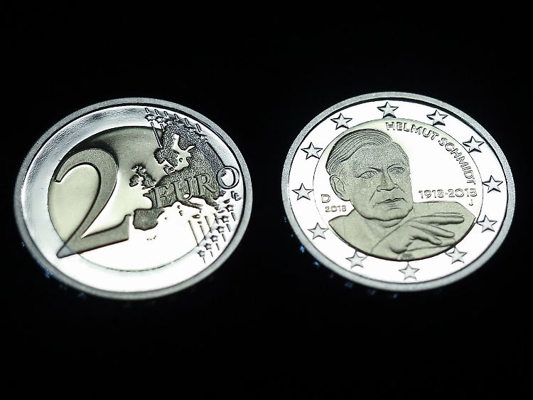 30 Millionen Münzen sollen die Europäer an den vor zwei Jahren gestorbenen Altkanzler Helmut Schmidt erinnern. Ein Zwei-Euro-Stück mit dem Porträt des aus Hamburg stammenden SPD-Politikers kommt am Dienstag in Umlauf und wird im gesamten Euro-Raum als Zahlungsmittel dienen. Mitte September hatte die Hamburger Münze mit der Prägung von 6,3 Millionen Exemplaren begonnen. Die übrigen Geldstücke wurden in den vier anderen deutschen Münzprägestätten (Berlin, München, Stuttgart und Karlsruhe) hergestellt.