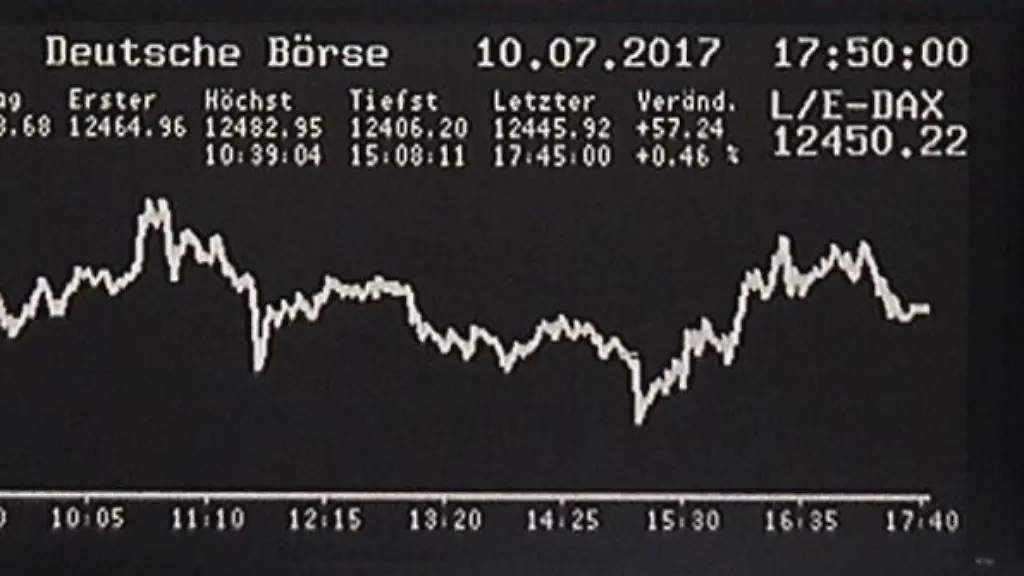 Zufriedene Gesichter an der Börse: Der erste Handelstag der neuen Woche geht am deutschen Aktienmarkt mit einem stabilen Aufwärtstrend zu Ende. Der Leitindex Dax verabschiedet sich mit einem Plus von 0,46 Prozent und einem Schlussstand von 12.455,92 Punkten in den Abend. Im Verlauf hatte sich das Frankfurter Börsenbarometer bis auf ein Tageshoch bei 12.482,95 Zähler vorgearbeitet.