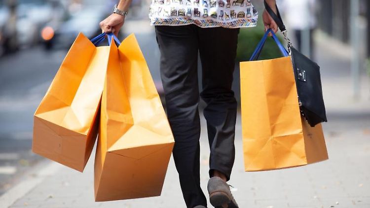 Ein Mann geht mit Einkaufstüten über eine Straße. Foto: Martin Gerten/dpa/Archivbild