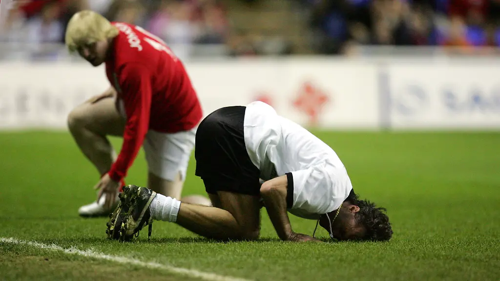 In einem kurzen Gif ist Boris Johnson zu sehen, wie er 2006 bei einem Fußball-Benefizspiel Maurizio Gaudino eindrucksvoll zu Fall bringt. Kopf voran rannte er auf den Ex-Nationalspieler zu und traf ihn dort, wo es besonders wehtut.