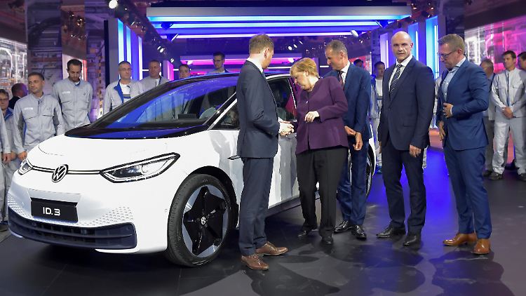 04.11.2019, 12:24 UhrVolkswagen hat mit dem Bau seines ersten rein elektrischen Großserien-Modells begonnen. Vorstandschef Herbert Diess eröffnete im Werk Zwickau die Produktionslinie für den ID.3. Zugegen war in der westsächsischen Stadt auch Bundeskanzlerin Angela Merkel. Das Auto soll beim größten Hersteller der Welt das Massengeschäft mit elektrischen Fahrzeugen etablieren und die Grundlage für weitere Varianten mit alternativem Antrieb werden.