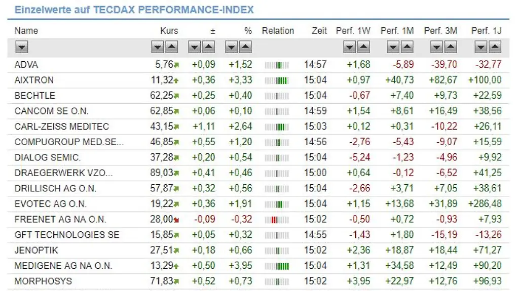 Stark gefragt sind aktuell vor allem solide arbeitende Index-Mitglieder wie Aixtron, Carl Zeiss Meditec und Medigene, die sich jeweils um mehr als 3 Prozent verteuern.