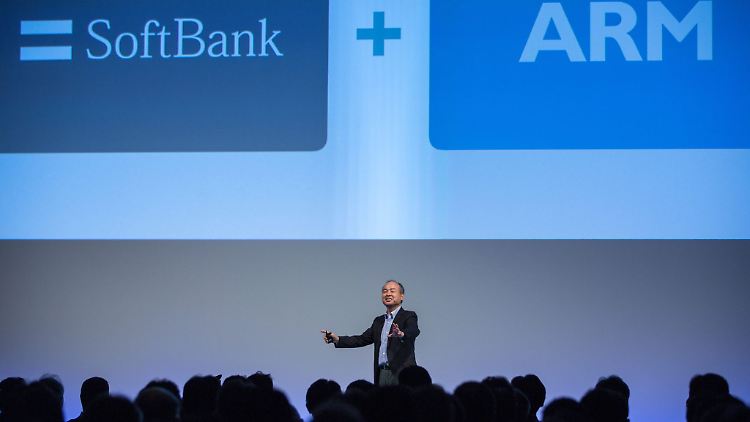Masayoshi Son, Gründer und CEO von Softbank, während einer Pressekonferenz. Der Chip-Designer Arm ist ein Schlüssel-Unternehmen für die Smartphone-Branche.