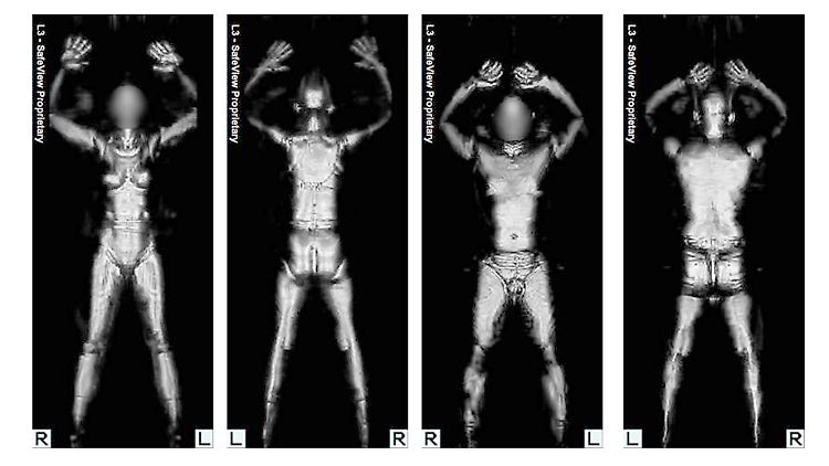 Die Röntgenbilder, die mit Hilfe eines Ganzkörper-Scanners entstanden sind, zeigen weibliche und männliche Personen ohne Kleidung (undatiertes Handout).