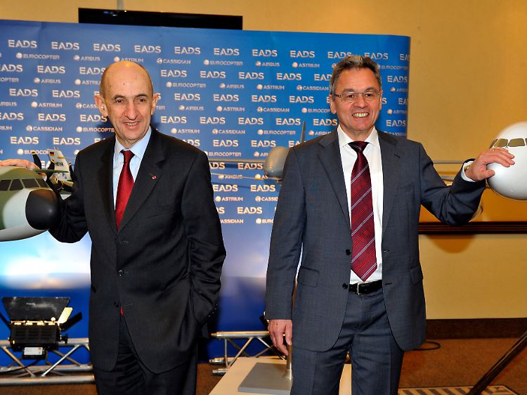 EADS-Chef Gallois (l.) mit Finanzvorstand Hans Peter Ring bei der Bilanz-Präsentation.