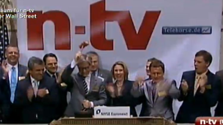 Dennoch war der Mittwoch an der Wall Street ein besonderer: Der Handelsschluss um 22 Uhr MESZ wurde nämlich durch n-tv vollzogen. Der Börsenreporter für New York, Markus Koch, läutete gemeinsam mit seiner Frankfurter Kollegin Katja Dofel die Schlussglocke. Bei der Zeremonie zugegen war n-tv Geschäftsführer Hans Demmel. In diesem Monat berichtet n-tv seit 15 Jahren von der New Yorker Börse. Bislang war es noch keinem deutschen Sender vergönnt gewesen, einen Handelstag in New York zu beenden.