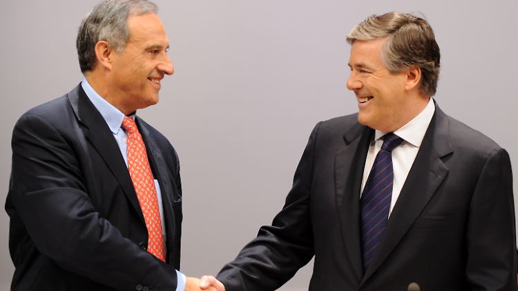 Clemens Börsig (l.) und Josef Ackermann demonstrieren ein herzliches Verhältnis zwischen Aufsichtsrat und Vorstand.