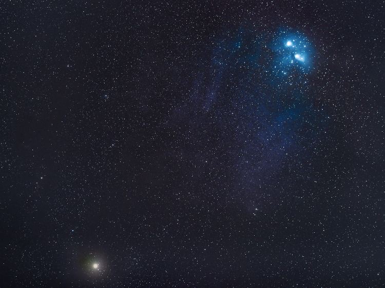 Mars baut seine Morgensichtbarkeit kräftig aus. Er wandert in das "Goldene Tor der Ekliptik" hinein, das von den beiden offenen Sternhaufen Hyaden und Plejaden im Stier gebildet wird. Damit erreicht er nun die nördlichsten Bezirke des Tierkreises, während die Sonne bereits mit ihrem Abstieg zum Himmelsäquator begonnen hat. Am 1. erfolgt der Mars-Aufgang eine Viertelstunde nach 2 Uhr morgens, am 31. bereits zwei Stunden früher. Die Mars-Helligkeit nimmt weiter leicht zu.