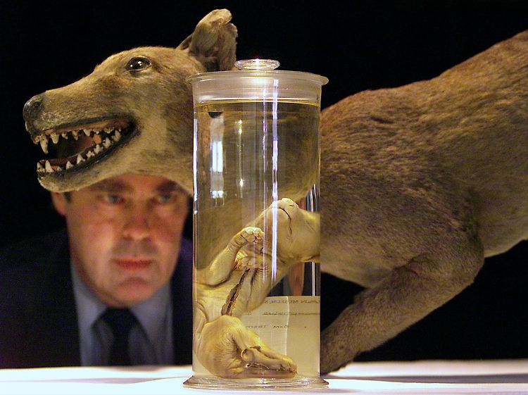 Tasmanischer Tiger im Modell und in Alkohol eingelegt im Australian Museum in Sydney.
