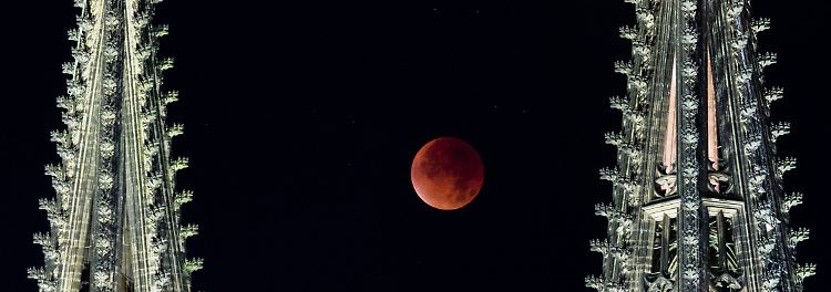 Viele Menschen stellen sich extra den Wecker, um die totale Mondfinsternis nicht zu verpassen. Am frühen Morgen ist es dann so weit: Der Mond tritt in den Kernschatten der Erde. Er sieht etwas größer aus als gewöhnlich - und ist blutrot.