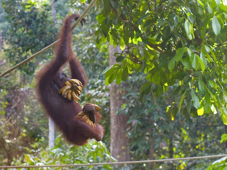 Der Orang-Utan, dessen malaiischer Name "Wald-Mensch" bedeutet, lebt nur auf Borneo und der indonesischen Insel Sumatra. Auch Asiens einzige große Affenart ist nach Angaben der Umweltstiftung WWF bedroht, weil sie mehr und mehr von ihrem Lebensraum einbüßt. Die Population sei in Sabah von geschätzten 20.000 Affen Mitte der 1980er Jahre auf fast die Hälfte im Jahr 2004 geschrumpft. "Dieser Rückgang wurde durch die geplante Umwandlung von Wäldern in Plantagen in dem östlichen Tiefland bewirkt", heißt es im WWF-Bericht.
