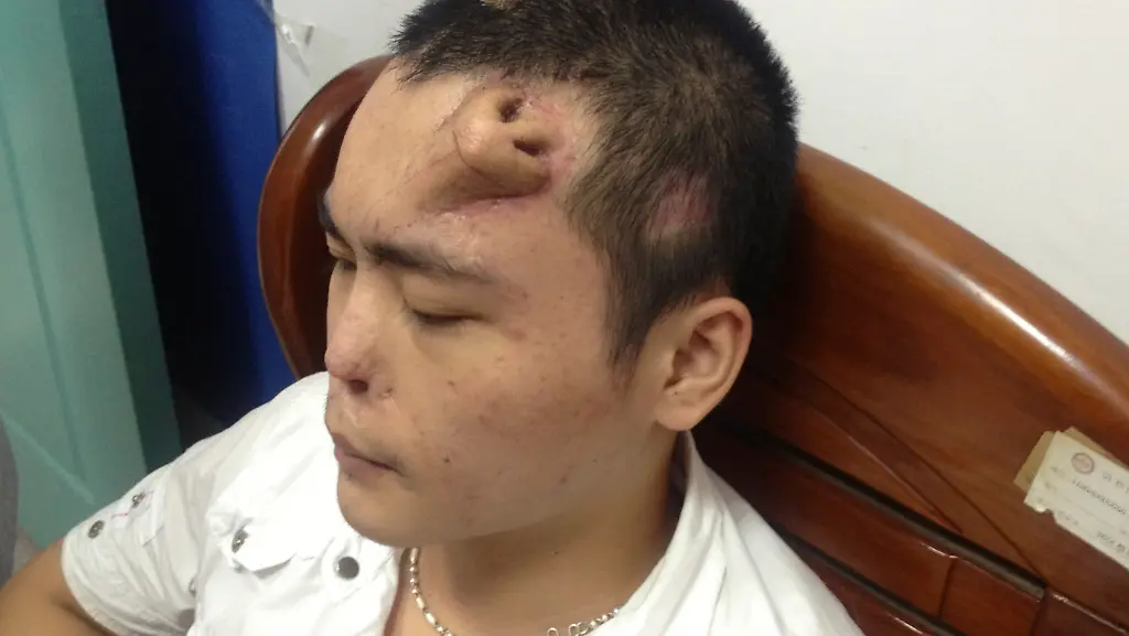 Der Mann ist 22 Jahre alt, heißt Xiaolian und war vor einem Jahr in der Provinz Fuzhou in einen Verkehrsunfall verwickelt. Er trug schwere Verletzungen an der Nase davon. So viel Knorpel war zerstört, dass die Ärzte das Riechorgan des Mannes nicht rekonstruieren konnten. Also entschieden sie, eine neue Nase wachsen zu lassen. Offenbar war dafür die Stirn der geeignetste Ort.