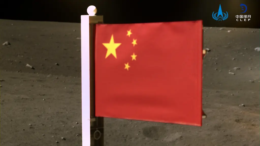 Anders als die Fahnen der Apollo-Missionen Ende der 60er und Anfang der 70er Jahre, deren Stangen die Astronauten in den Mondstaub gesteckt hatten, steht der Flaggenmast auf einem ausgeklappten Arm des zurückgelassenen Landers. Eine Kamera zeigte die rote Fahne vor dem Mondhorizont. Schon bei den beiden vorhergegangenen Mondlandungen Chinas 2013 und 2019 zeigten die Lander aufgedruckte Nationalflaggen - aber es ist jetzt die erste, die tatsächlich auf dem Mond "weht".
