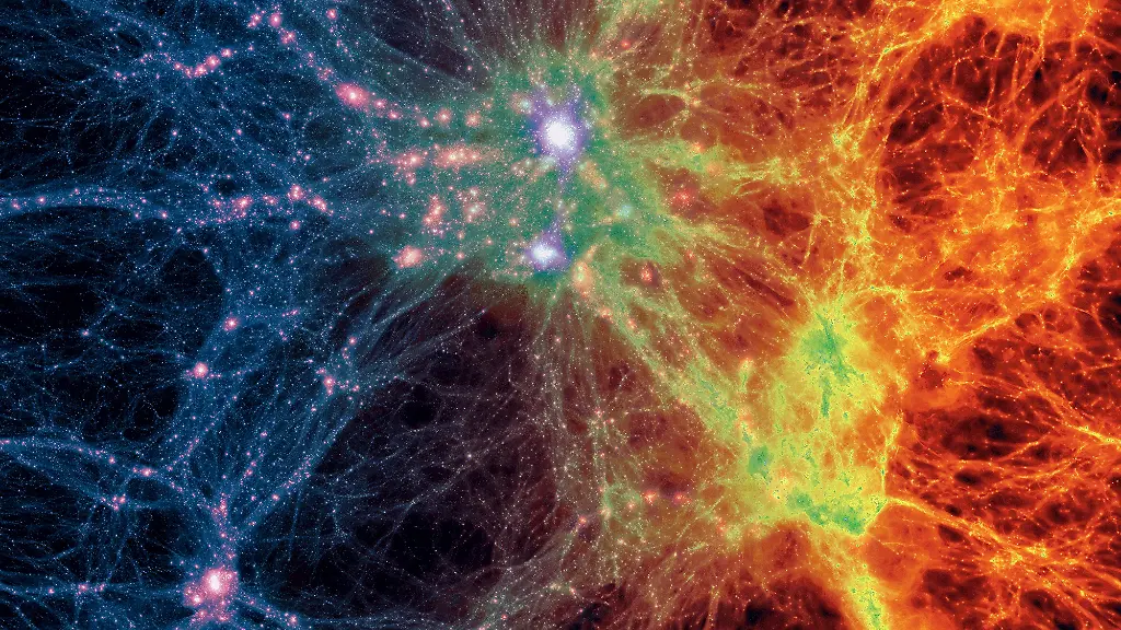 Dabei beschreibt die Modellrechnung genau genommen nur einen Ausschnitt des Universums. Der ist allerdings gigantisch: Die Forscher haben einen Würfel mit einer Kantenlänge von jeweils rund 350 Millionen Lichtjahren simuliert, den sie in insgesamt 12 Milliarden einzelne Zellen unterteilt haben. Ein Lichtjahr ist die Strecke, die das Licht in einem Jahr zurücklegt, und entspricht knapp zehn Billionen Kilometern.