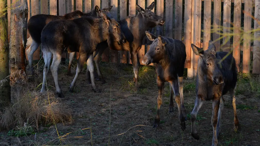 Zunächst sind die vier Kühe und ein Bulle auf einer Fläche von acht Hektar untergebracht - das entspricht etwa elf Fußballfeldern. Ab dem Frühsommer leisten die Elche ihren fünf Artgenossen Gesellschaft. Dann können sich die Tiere auf rund 21 Quadratkilometern frei bewegen.