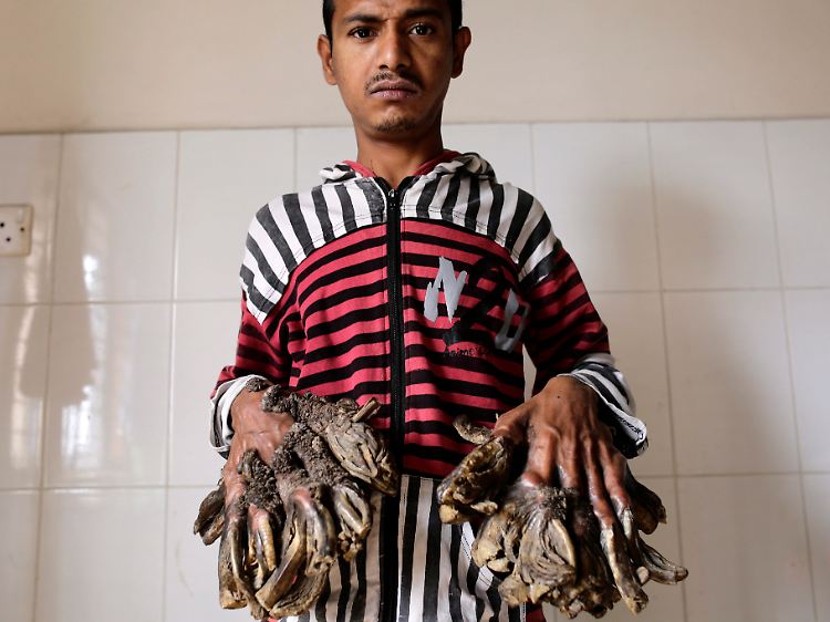 Bajandars Hände sehen aus, als würden seine Finger in Baumwurzeln münden. Nach Angaben von Krankenhausleiter Samanta Lal Sen wird die Leiden im Volksmund deshalb auch "Baummann-Krankheit" genannt. Einen derart schweren Fall wie bei Bajandar habe es nach seinem Wissen in Bangladesch noch nicht gegeben, weltweit seien nur wenige derart extreme Fälle bekannt.