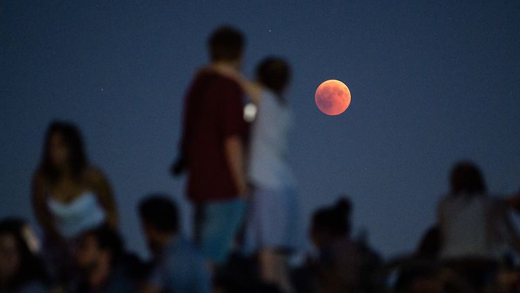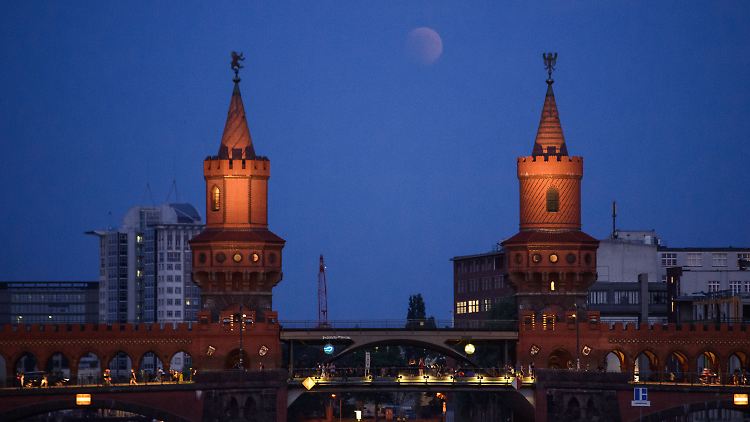 Sternengucker beobachten deutschlandweit die längste Mondfinsternis des Jahrhunderts. Auch der Mars leuchtet besonders hell. Der Vollmond erstrahlt kupferfarben bis orangerot. Tausende verfolgen draußen das Himmelsspektakel.