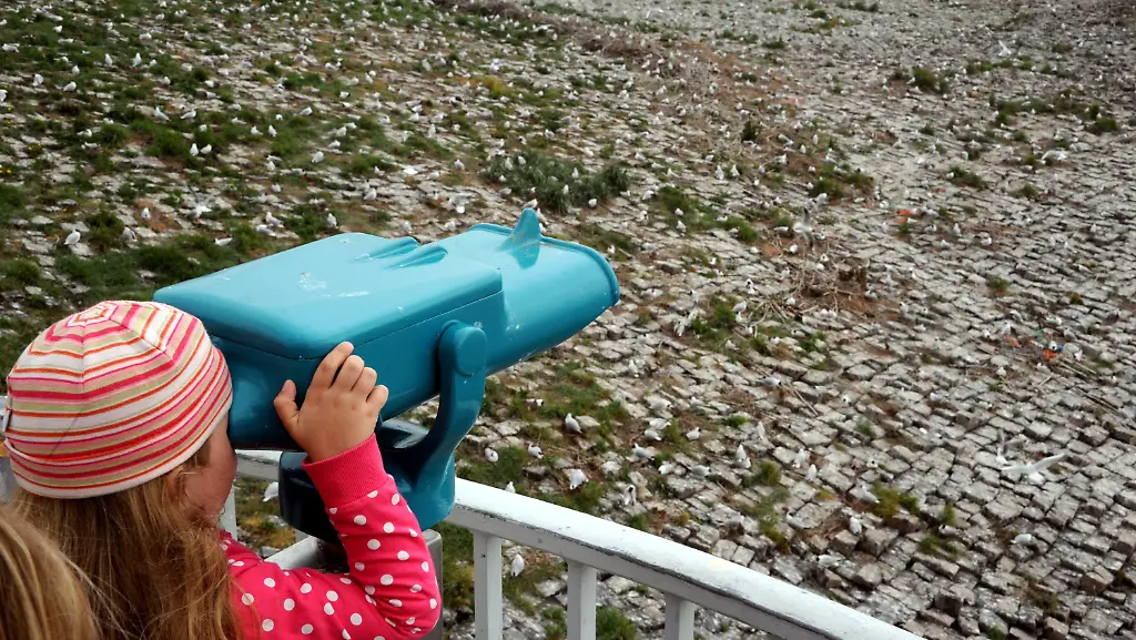 Eine Kolonie Küstenseeschwalben hat sich das Eidersperrwerk in Nordfriesland als Kinderstube ausgesucht. Die weiß-grauen Vögel mit den schwarzen Kappen und knallroten Schnäbeln ziehen ihre Küken direkt neben dem Parkplatz von Deutschlands größtem Küstenschutzbauwerk auf. Rund 400 Paare lebten derzeit am Fuße des Eidersperrwerks, heißt es bei der Nabu-Station Katinger Watt. Der ungewöhnliche Nistplatz in unmittelbarer Nähe einer Touristenattraktion sei mittlerweile selbst ein touristischer Anziehungspunkt, erklärt Nationalpark-Ranger Martin Kühn.
