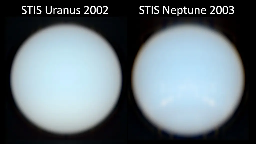 Voyager 2 hatte keine echten Farbfotos geliefert, sondern eine Reihe von Bildern mit unterschiedlichen Farbfiltern aufgenommen. Diese zu einem Bild in Echtfarbe zu kombinieren ist jedoch keine einfache Aufgabe - insbesondere, wenn es zugleich darum geht, schwache Details sichtbar zu machen. Im Gegensatz dazu liefern die heutigen Teleskope Spektren, aus der sich die Farbe besser ermitteln lässt. Allerdings ist aufgrund der großen Entfernung der beiden Planeten von der Erde die Auflösung viel geringer als bei den Nahaufnahmen von Voyager 2.