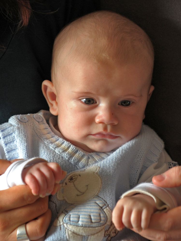 Der knapp drei Monate alte Maximilian liegt zufrieden lächelnd auf dem Schoß seiner Mutter Caroline in Radebeul bei Dresden. "Er ist ein Wunschkind", sagte die 33-Jährige. 2003 war bei ihr das Hodgkin-Lymphom, eine aggressive Form von Lymphdrüsenkrebs, festgestellt worden.