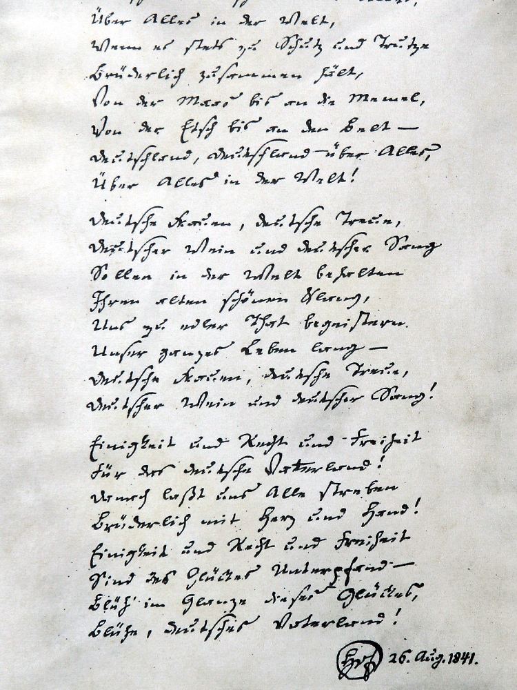 Der Originaltext aus der Feder von Hoffmann von Fallersleben (Faksimilie).