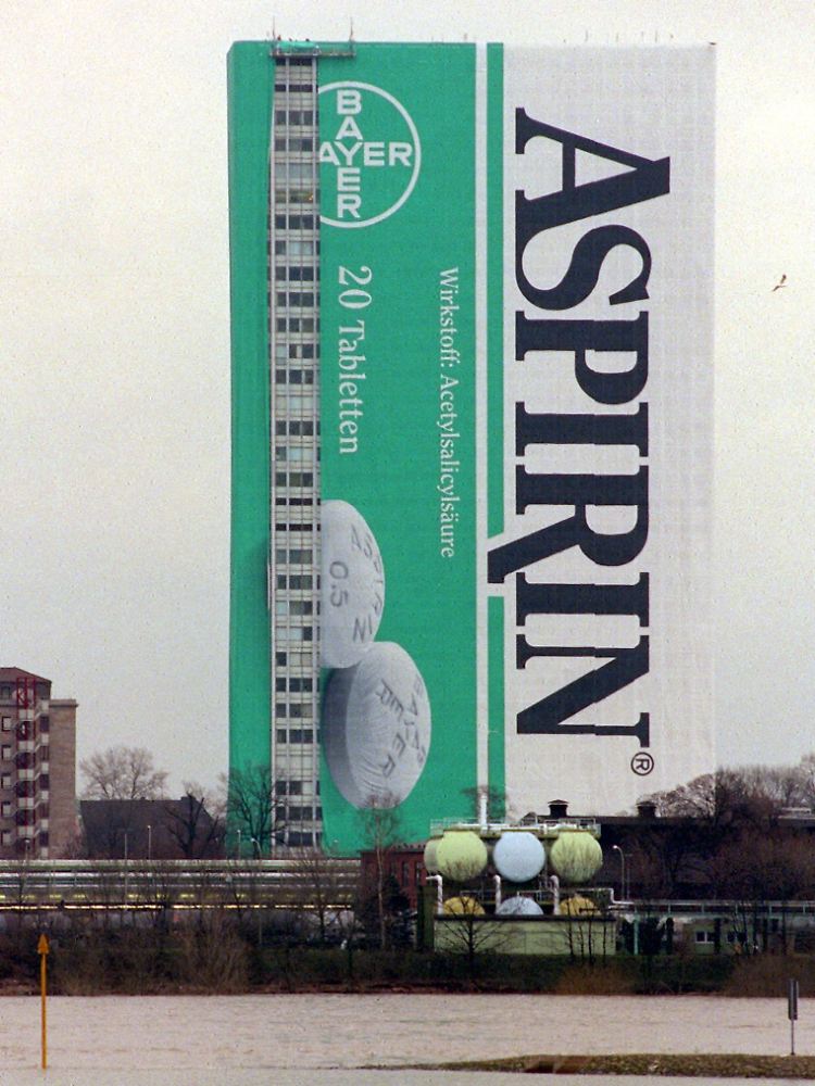 Zum 100. Geburtstag wurde das Bayer-Hochhaus in Leverkusen in eine überdimensionale Aspirin-Verpackung verwandelt.